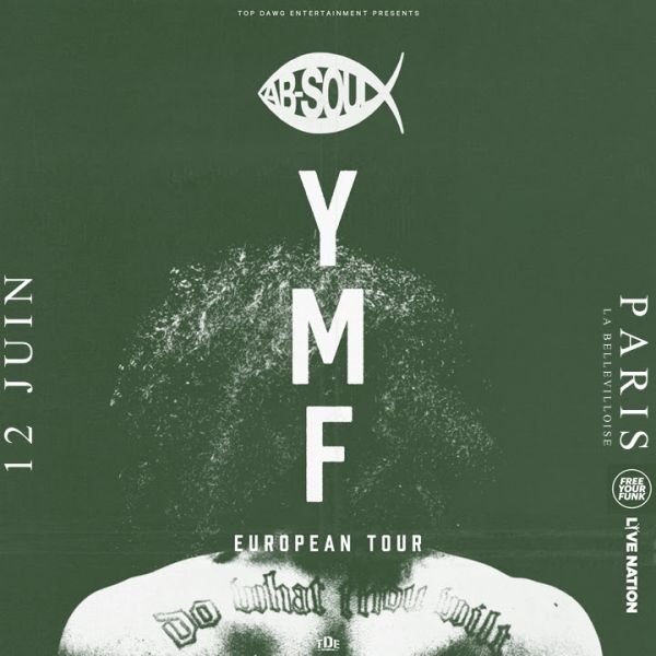 alors que kendrick lamar s'apprête à sortir son nouvel album le 7 avril, son pote ab-soul fera son premier concert parisien le 12 juin ! colistier de kendrick lamar, schoolboy q et jay rock au sein de tde et de leur groupe black hippy, le rappeur californien ab soul viendra enfin à paris le lundi 12 juin pour un concert à la bellevilloise à l'occasion de la sortie de son nouvel album.