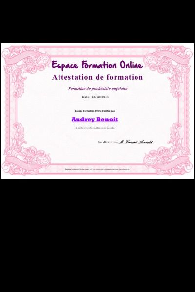 Attestation de formation de prothesiste ongulaire