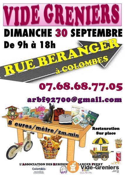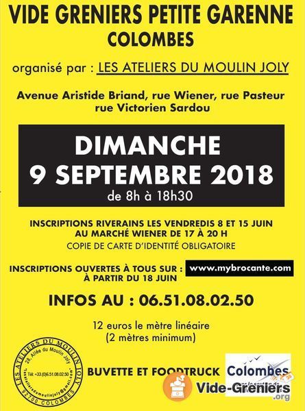 exposants particuliers prioritairement garennois (les feuilles d'inscriptions seront disponibles chez les commerçants du quartier fin août) - des emplacements seront attribués aux non garennois en fonction des places disponibles